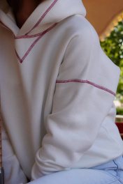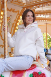 Худи -кроп выполнен из премиального турецкого футера с начесом и велюровым напылением. Это эксклюзивный футер с необыкновенной мягкой фактурой и бархатной лицевой стороной.Мягкость и пластичность материала -это особенное удовольствие, так как его не хочется снимать. Отличительная особенность этого футера заключается в прекрасной износостойкости и низкой сминаемостью, поэтому вы можете быть уверены в своем отличном внешнем виде, даже после длительного сидения, кроме того этот материал обладает исключительными терморегуляционными свойствами.Невероятная мягкость и пластичность материала -это особенное удовольствие, так как его не хочется снимать. Худи-кроп с глубоким двухсторонним капюшоном, со спущенным плечом, удобная горловина не сдавливает шею,капюшон красиво окаймляет горловину, когда спущен, когда надет не тянет.Декоративная отстрочка красного цвета делает этот комплект особенным и эксклюзивным, так как каждый костюм отстрочен вручную. Нижний край выполнен из резинки кашкорсе, которая аккуратно заканчивает изделие, не стягивая его, но при этом создает форму.Длина изделия 60 см, длина рукава от горловины 75 см. Рукав удлиненный, чуть зауженный книзу, чтобы можно было носить в холодную пору года с верхней одеждой.Манжет рукава удлиненный с отверстием для большого пальца, позволяющий натянуть рукав на запястье, согревая его. Уход за изделием: деликатная стирка с жидким моющим средством при температуре 30-40 градусов. При стирке использовать мягкие моющие средства. не применять отбеливающие средства. S(42-44) Длина изделия 60 см( измерение производится от плеча вниз до края манжеты), длина рукава от горловины 75 см, ширина ( полуобхват груди) 54 см М(46-48) : -Длина изделия 60 см ( измерение производится от плеча вниз до края манжеты), длина рукава от горловины 75 см, ширина ( полуобхват груди) 60 см. L(50-54) : -Длина изделия 60 см ( измерение производится от плеча вниз до края манжеты), длина рукава от горловины 75 см, ширина ( полуобхват груди) 65 см