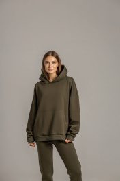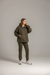 Худи с карманом кенгуру и брюки из премиального футера с начесом Twok 300993 хаки