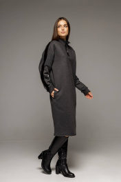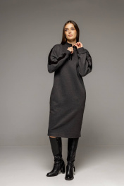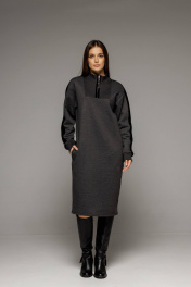 Платье с высоким воротником и металлической молнией из теплого футера Twok 400801 антрацит - фото 1