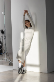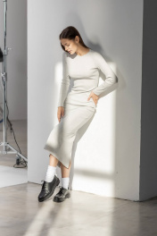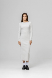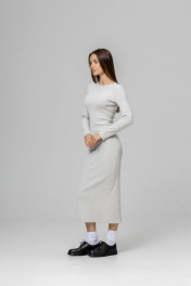 Облегающее трикотажное платье в цвете Серый меланж с вырезом лодочка, который придает изящества и женственности. Ткань сохраняет первоначальный вид, не покрываясь катышками, даже после многочисленных стирок. Кашкорсе не просвечивает, не мнется, не садится, не линяет.Благодаря своему крою, оно изящно сидит по фигуре, при этом не стесняет движений, позволяя чувствовать себя комфортно весь день. Длина изделия 135 см, сзади высокий разрез, позволяющий свободно двигаться,длина рукава от горловины 75 см.