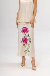 Юбка из струящегося искусственного шелка, легкого трапецивидного силуэта Ручная роспись выполненная художником, делает изделие эксклюзивным и, абсолютно, отличной от других.Силуэт юбки образуется за счет косого кроя, поэтому она красиво струится от бедер. Сбоку потайная молния, это позволяет юбке красиво ниспадать как с тали, так и приспущенной на бедра.Трендовая длина мидакси 90 см. Отлично сочетается со свитшотами, жакетами, пуловерами и атласным топом Артикул 555512 Стирка рекомендована ручная, в холодной воде с жидким моющим средством, гладить рисунок через пеленку.