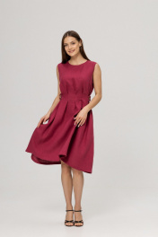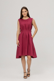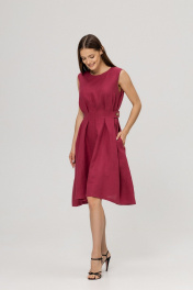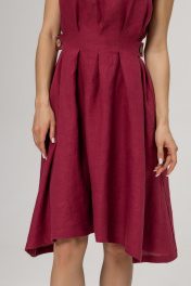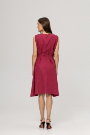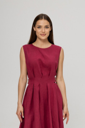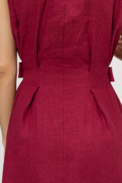 Платье из умягченного льна с эффектом мятости в трендовом цвете Вишневый сочетает в себе элегантность и утонченность. Легкий дышащий лен придает изделию комфорт и свежесть, являясь идеальным материалом для теплых дней. Платье имеет классический силуэт , который моделирует фигуру, благодаря защипам и боковым поясам с кокосовыми пуговицами. Объем талии может регулироватьс. Для размера S талия от 62 см до 72 см, для размера М - талия от 72 см до 80 см, для размера L талия от 80 см до 88 см., визуально уменьшая фигуру на 2 размера. Длина изделия 96 см. В боковых швах вместительные аккуратные карманы.Сзади застежка на пуговицу.