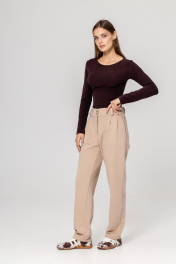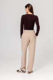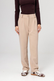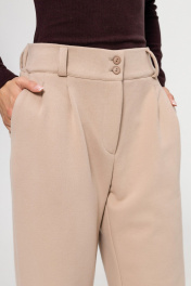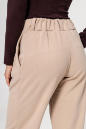 Брюки из хлопкового футера с велюровым напылением, зауженные книзу, с высокой талией.и Притачной пояс со шлевками, сзади на резинке, передние половины со складками, застежка на молнию и пуговицы, боковые карманы. Длина внутреннего шва брюк 78 см