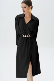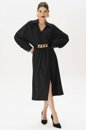 Черное платье с поясом - это универсальный элемент гардероба, который подходит для любых случаев. Платье выполнено из качественного материала, который приятен на ощупь и хорошо сидит на фигуре. Пояс подчеркивает талию, делая силуэт более стройным и изящным. Такое платье подойдет для любого случая - от романтического ужина до деловой встречи. Платье может быть как повседневное так и нарядное, в комплект к платью идет съемный пояс (пояс может немного отличаться от того, что на фото). Платье женское со спущенным цельнокроенным рукавом типа “летучая мышь” “на запАх” и резинкой по линии талии. По низу рукава идет сборка и манжет, который застегивается на петлю и пуговицу (фурнитура может незначительно отличаться от фото). Спинка платья со средним швом. Горловина V-образная с отложным воротником, концы воротника острые. Средняя длина платья по середине спинки - см (±3,0 см), Средняя длина рукава с манжетой от горловины - см (±3,0 см). Тип ткани: плательно-блузочная Состав: полиэстер - 96%, спандекс - 4%.