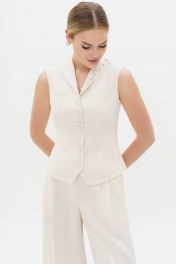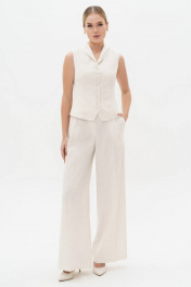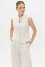 Летний женский льняной костюм с жилеткой станет незаменимым элементом вашего гардероба, позволяя создавать стильные и комфортные образы для любых поводов - от деловых встреч до романтических прогулок. Не упустите возможность выразить свою индивидуальность и чувство стиля с этим прекрасным костюме! Костюм женский двухпредметный, состоит из жилетки и брюк. Костюм предназначен для повседневной носки. Жилет женский полуприлегающего силуэта на подкладке с центральной бортовой застежкой на 10 петель и пуговиц. Перед жилета с вертикальными рельефными швами, выходящими из плечевого шва и идущими до низа. Низ борта со скошенными углами. С левой стороны по верху переда обработан карман-обманка с листочкой. Состав изделия: Полиэстер - 39%, вискоза - 32%, лен - 29% Состав подкладки: Хлопок - 100%