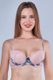 Бюстгальтер пуш-ап на каркасах из эластичного полотна и эластичного кружева. Чашка формованная, обтянута эластичным кружевом и эластичным полотном. Стан из эластичнго кружева. Бретель съемная.