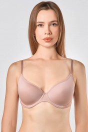 Бюстгальтер на каркасах с формованной чашкой "спейсер". Верхний срез чашки и пройма обработаны эластичной окантовкой. Стан из эластичного сетчатого полотна с заработанным краем.