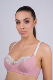 Бюстгальтер из эластичного хлопчатобумажного полотна, нижняя чашка на дубляже, верхняя часть из эластичного кружева, боковые детали из основного трикотажного полотна.