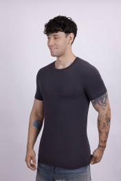 Фуфайка мужская с рукавом из хлопка с эластаном. Силуэт приталенный. Горловина обработана бейкой из основного полотна.