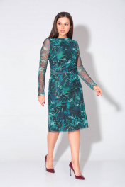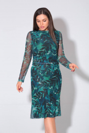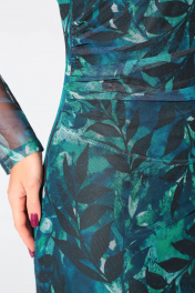 Платье женское,прилегающего силуэта. Горловина округлой формы. Рукав длинный втачной. По переду в боковом шве выполнена сборка со складками. По спинке обработан средний шов. Изделие на вискозной подкладке.