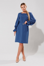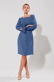 Платье прямого кроя с поясом и вытачками Verita 2271 голубой