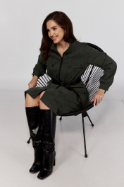 Платье с кокеткой и кулисой из легкого текстиля Verita 2331 хаки