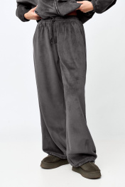 Костюм спортивный женский состоит из джемпера и брюк. Костюм выполнен из велюровой ткани в рубчик. Джемпер кроя “oversize” с воротником-стойкой и застежкой на молнию. Рукав спущенный, двухшовный. По низу рукава резинка. По переду отрезная фигурная кокетка, в рельефе карман. По низу джемпера есть кулиса с регулировкой. Брюки прямые на поясе с резинкой, крой “oversize”. Есть карманы в боковых швах. Ширина брюк по низу регулируется кулисой. Размер S/M соответствует размерам 44-48, M/L- 50-54 размеру.