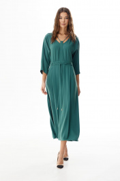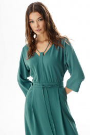 Платье полуприлегающего силуэта. Длина миди. Платье отрезное по талии. Вырез горловины V-образной формы. Застежка по спинке на молнию. Рукав цельнокроеный, длина ¾. Юбка расширена книзу. В боковых швах карманы. По талии съемный пояс-завязка. 44 р-р: ОГ - 96 см., ОТ - 74 см., ОБ - 126 см. 46 р-р: ОГ - 100 см., ОТ - 78 см., ОБ - 130 см. 48 р-р: ОГ - 104 см., ОТ - 82 см., ОБ - 134 см. 50 р-р: ОГ - 108 см., ОТ - 86 см., ОБ - 138 см. 52 р-р: ОГ - 112 см., ОТ - 90 см., ОБ - 142 см.