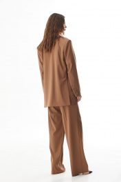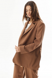 Жакет прямого силуэта. Застежка на петли и пуговицы. Воротник пиджачного типа. На переде карманы с клапаном. По низу спинки высокие шлицы. Рукав прямой двухшовный со шлицей и пуговицами. Жакет на подкладке.