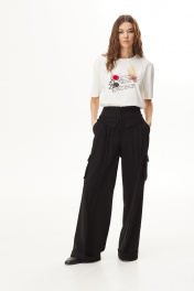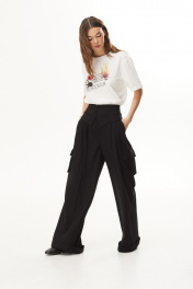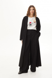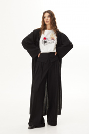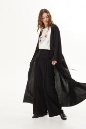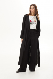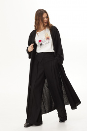 Комплект 3-х предметный: тренч, блузка и брюки.Тренч из вискозной ткани. Застежка на запах с завязками. Длина макси. Рукав прямой длинный. По переду высокий разрез. По спинке складка и хлястик в области талии.Блузка объемной формы из трикотажного полотна. Вырез горловины круглой формы. Рукава короткие. На переде печать.Брюки широкие из вискозной ткани. Верх брюк с декоративным отложным элементом. Застёжка по центру переда на молнию. Боковые наклонные карманы. По переду складки. Накладные карманы-портфели. Низ брюк на манжете. 48 р-р: туника: ОГ - 118 см., ОТ - 114 см., ОБ - 124 см.; блузка: ОГ - 116 см., ОТ - 116 см., ОБ - 120 см.; брюки: ОТ - 83 см., ОБ - 108 см. 50 р-р: туника: ОГ - 122 см., ОТ - 118 см., ОБ - 128 см.; блузка: ОГ - 120 см., ОТ - 120 см., ОБ - 124 см.; брюки: ОТ - 87 см., ОБ - 112 см. 52 р-р: туника: ОГ - 126 см., ОТ - 122 см., ОБ - 132 см.; блузка: ОГ - 124 см., ОТ - 124 см., ОБ - 128 см.; брюки: ОТ - 91 см., ОБ - 116 см.
