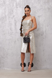 Платье миди на бретелях из текстиля с разрезом и отрезной линией талии Vesnaletto 4053