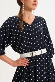 Синее расклешенное платье с V-образным вырезом и карманами VI ORO VR-1051/2