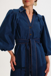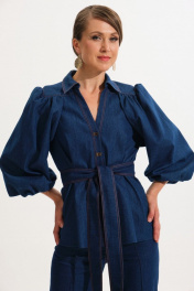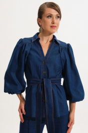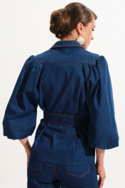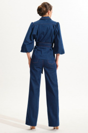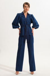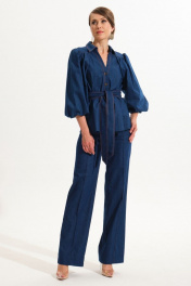 Джинсовый костюм жакет и прямые брюки из хлопка VI ORO VR-1059 синий