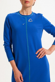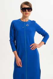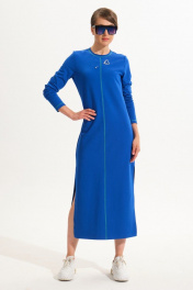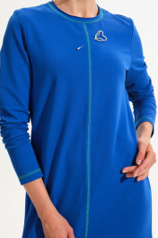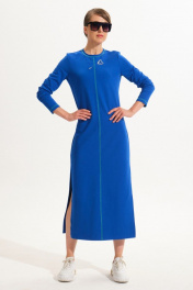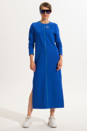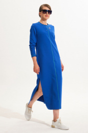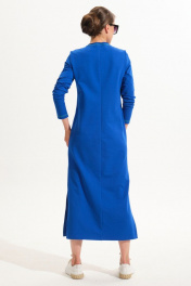 Платье свободного покроя, прямого силуэта.В боковых выполнены разрезы. Рукав втачной одношовный. Горловина округлой формы.Обработана бейкой с сырыми срезами и отделочной строчкой контрастными нитками.Спинка и перед со средними швами, обработаны сырыми срезами и отделочной строчкой контрастными нитками.Имеется декоративная брошь.