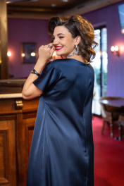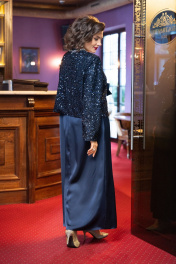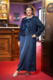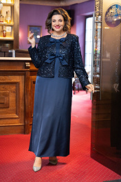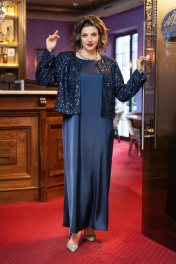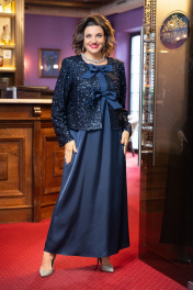 Комплект женский состоит из укороченного жакета из полотна с пайетками и атласного платья.Жакет прямого силуэта свободного покроя с естественной линией плеча на подкладке из атласной ткани.Горловина округлой формы.БАНТЫ СЪЁМНЫЕ!Застежка на съемные декоративные авторские банты с применением потайного крепления на небольшие кнопки, для возможности создания различных образов, как с бантами, так и без них.Платье женское свободного покроя расширенное к низу.Горловина округлой формы.Спинка со средним швом и застежкой на тесьму-молнию.Рукав цельнокроеный типа "летучая мышь".