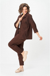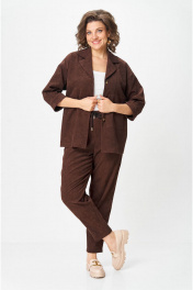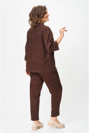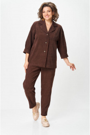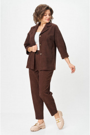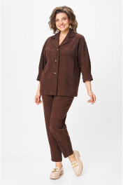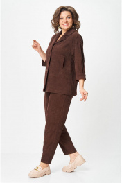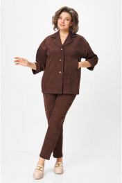 Жакет классический из ткани вельвет без подкладки. Воротник пиджачного типа, рукав спущенный низ рукава с встречной складкой обработан манжетом. Застежка на петли пуговицы, на полочке накладной карман. Брюки: Верхний срез брюк обработан поясом в пояс вставлена резинка и шнур для регулировки . В боковых швах брюк карманы. Обмеры готового изделия: Длина жакета по спинке от линии притачивания воротника= 68см длина рукава от линии притачивания воротника= 62см Брюки Длина брюк по боковому с учетом пояса=103см От 54р=92-108см 56р=96-112см 58р=100-116см Об 54р=122см 56р=126см 58р=130см