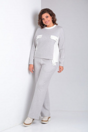 Комплект трикотажный джемпер и брюки с декоративными вставками VIA-Mod 617 св.серый