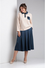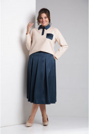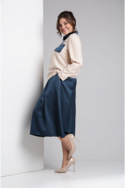 Синий комплект из свободной блузы и юбки из текстиля VIA-Mod 641 изумруд