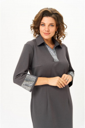Стильное женское платье прямого силуэта — идеальный выбор для тех, кто ценит комфорт, элегантность и современный дизайн. Модель выполнена из мягкого, приятного к телу трикотажа, который отлично сидит по фигуре, не стесняет движения и подчёркивает достоинства силуэта, дополнено отделочной тканью «пайетки». Горловина платья обработана рубашечным воротником и планками из отделочной ткани, по полочке талевые выточки. Спинка с средним швом, в районе горловины сделан элемент капелька с петлями и отделочным шнуром из страз, рукав втачной по низу рукава манжет из отделочной ткани.
