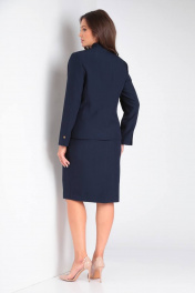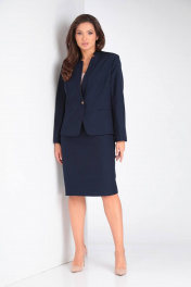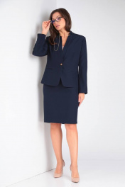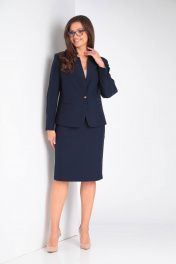 Костюм женский 2-х предметный полуприлегающего силуэта. Состоит из жакета на подкладке и юбки на подкладке. Жакет с однобортной центральной застёжкой на 1 петлю и 1 пуговицу. Перед с рельефными швами от пройм до низа с талиевыми вытачками, входящими в функциональный прорезной карман «в рамку». Спинка со средним швом и рельефными швами от пройм до низа. Рукав втачной, двухшовный с открытой шлицей в локтевом шве, длинный. Жакет с отрезными лацканами и воротником с прямыми углами. Юбка с застёжкой на потайную тесьму «молнию» в средних срезах задних половинок. Средний шов заканчивается шлицей. Перед с отрезной кокеткой и бочком имитирующим карман. Талиевые вытачки по задним половинкам. Юбка полуприлегающего силуэта слегка зауженная к низу. Длина жакета по спинке - 61 см. Длина рукава - 61 см. Длина юбки - 63 см.