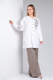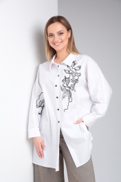 Классическая рубашка из хлопка с вышивкой и спущенным плечом Viola Style 1180