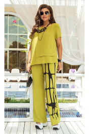 Шикарный летний женский костюм, состоящий из блузы и прямых брюк. Костюм, в котором комфортно гулять даже в самую жаркую погоду, идеален для путешествия, прогулок, а также отлично подойдёт для повседневных образов. Блуза прямого силуэта с округлой горловиной, нагрудными выточками и отлетной деталью по переду блузки. Спинка без особенностей. Рукав втачной, короткий. Низ в блузе ассиметричный, в боковых швах по низу разрезы. Брюки прямого силуэта, свободные. Пояс в брюках притачной на резинке, которая обеспечивает максимально комфортную посадку на любой тип фигуры. В качестве дополнительного декоративного элемента по переду брюк – дизайнерская печать. Изделие комплектуется декоративным съёмным украшением. Обращаем ваше внимание, что фурнитура может незначительно отличаться от фото. Длина блузы вдоль середины спинки 69 см (р.50-54), 70 см (р.56-60). Длина рукава 21 см. Длина брюк по боковому шву с поясом 106 см. блуза 50 52 54 56 58 60 обхват груди 108 112 116 120 124 128 обхват талии ширина изделия на уровне линии бедер118 122 126 130 134 138 ширина рукава вверху 40 42 44 46 48 50 брюки 50 52 54 56 58 60 ширина на уровне среднего шва 114 118 122 126 130 134 ширина по линии талии (с резинкой) 76 80 84 88 92 96 ширина по линии талии (без резинки) 112 116 120 124 128 132 ширина внизу 30 30 30 33 33 33