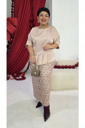Комплект женский юбочный, состоящий из блузы и юбки. Комплект идеально подходит для вечерних торжеств, где важна каждая деталь, чтобы подчеркнуть изысканную женственность и уверенность в себе — светлый, элегантный и чуть волнующий наряд, который оставляет за собой шепот восхищения. Сочетание матового атласа и зеркального блеска пайеток создает идеальный дуэт. Блуза (состав: 100% полиэстер) свободного силуэта, горловина округлой формы. По переду джемпера декоративная отлетная складка, с воланом с заложенными декоративными складками, он живет своей жизнью, колышется при каждом шаге, добавляя динамики и легкости верху. Он не пришит намертво, он «отлетает», создавая ощущение незавершенности и художественного хаоса. Рукав в блузе цельнокроеный, длиной ¾. Спинка в блузе со средним швом. Низ в блузе ассиметричный. Юбка (состав: 100% полиэстер, подкладка 97% полиэстер, 3 % спандекс) прямого силуэта, длины миди с притачным поясом с эластичной тесьмой-резинкой в круговую, что обеспечивает максимально удобную посадку на любой тип фигуры. В среднем шве юбки разрез от низа. Длина спинки блузы 60 см (р 52-56), 61 см ( р 58-62), длина по переду право/лево 58/67 см (р 52-56), 59/69 см (р 58-62). Длина рукава 41 см. Длина юбки 90 см. Блуза размер 52 54 56 58 60 62 обхват груди 116 120 124 130 134 138 ширина по низу 124 128 132 136 140 144 Юбка обхват талии 84/114 88/118 92/122 96/126 100/130 104/134 обхват бедер 120 124 128 132 136 140 ширина пояса 4 4 4 4 4 4