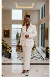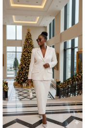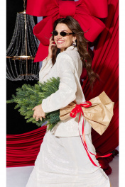 Это не просто женский юбочный костюм — это будто вторая кожа, сотканная из ночных огней и лунной пыли. Пайетки, бесчисленные и плотно прилегающие друг к другу, словно чешуя диковинной рыбы, не просто сверкали. Они жили своей собственной, мерцающей жизнью, рождая на своей поверхности целую вселенную из бликов. Костюм женский, двухпредметный, состоящий из жакета и юбки. Жакет однобортный, «оверсайз» силуэта, с акцентом на ровную линию плеч, с цельнокроеными отложными лацканами и потайной застёжкой на пришивные кнопки по краю борта. По переду жакета нагрудные вытачки и декоративные клапана карманов. Спинка в жакете со средним швом. Рукав в жакете втачной, одношовный, длинный. Жакет на подкладке. Юбка длины «миди», обтачная по верхнему срезу подкладкой. В среднем шве заднего полотнища юбки застёжка на декоративную тесьму-молнию в среднем шве. От низа юбки в среднем шве разрез. Юбка на подкладке.Длина по спинке жакета 71 см, длина рукава 62 см. Длина юбки 96 см. Состав: 97% полиэстер, 3% спандекс, подкладка 100% полиэстер. Жакет 50 52 54 56 58 60 ширина на уровне проймы 110 114 118 122 126 130 ширина на уровне бедер (по низу) 116 120 124 128 132 136 ширина рукава вверху 40 42 44 44 46 48 Юбка 50 52 54 56 58 60 ширина по талии 88 92 96 103 107 111 обхват бедер 112 116 120 124 128 132