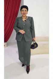- ОписаниеКостюм женский юбочный, состоящий из жакета и юбки. Этот феерический костюм соответствует сразу нескольким трендам! Стильный костюм сочетает в себе нарядность и в тоже время деловую элегантность. Ткань с эффектом «гофре» – хит сезона! Это структурированная ткань с жатым эффектом, который создаётся разным натяжением нитей в процессе ткачества. Жакет прилегающего силуэта, однобортный, с акцентом на ровную линию плеч, плавным V-образным вырезом горловины, застёжкой на декоративные петли-пуговицы по краю борта. По переду жакета вертикальные рельефы, декоративные складки от плеча, и имитация листочек кармана переходящих на спинку жакета. Спинка без особенностей. Рукав в жакете втачной, длинный, со сборкой по окату. Главным декоративным акцентом, который приковывает взгляд является россыпь пуговиц по борту, разных размеров и фактур. Это несомненно добавляет образу экстравагантность. Жакет на подкладке. Юбка прямого силуэта, длины «миди», с притачным поясом со вставкой эластичной тесьмы-резинки в бочках. В среднем шве юбки застёжка на потайную тесьму - молнию и пуговицу в поясе, с высоким разрезом от низа. Юбка на подкладке. Длина жакета по спинке 42 см (р 50-54), 45,5 см (р 56-60). Длина рукава 56 см. Длина юбки 85 см. Состав: 70% вискоза, 30% полиэстер, подкладка 100% полиэстер. Жакет 50 52 54 56 58 60 ширина на уровне проймы 108 112 116 120 124 128 обхват талии 100 104 108 114 118 122 ширина по низу 120 124 128 132 136 140 ширина рукава вверху 40 42 44 44 46 48 Юбка 50 52 54 56 58 60 обхват талии 80/96 84/100 88/104 92/108 96/112 100/116 обхват бедер 120 124 128 132 136 140 ширина пояса 4 4 4 4 4 4