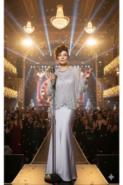 Комплект женский юбочный, состоящий из блузона, блузы и юбки. Комбинация текстур создаёт баланс между комфортом и эффектной внешностью. Тонкий трикотаж блузона держит верх мягко и деликатно, не перегружая образ, в то время как атласная юбка привносит лаконичную драму и движение. Их союз напоминает современную картину: спокойная энергия блузона встречается с холодной иронией юбки, образуя наряд, который подходит как для повседневной городской среды, так и для торжественных павильонов, когда нужен стиль без лишних слов.Состав: блузон 45% полиэстер, 24% вискоза, 31% люрекс, блуза 100% полиэстер, юбка 100% полиэстер. Блузон из тончайшего трикотажа держится на теле как вторая кожа: прозрачность ткани едва скрывает очертания силуэта, а тонкий плетёный рисунок ловко ловит свет, создавая игру полупрозрачных переходов. Его цвет— словно утренний туман, в котором каждая деталь дышит воздухом утончённости. Манжеты и блузона остаются эластичными и облегающими, подчёркивая плавные линии плеч и груди, без лишних объёмов, будто ткань шепчет о хрупкости и комфорте. По переду блузона средний шов с заложенными декоративными складками от горловины и от низа, направленные на встречу друг-другу. Рукав в блузоне цельнокроеный с притачной высокой манжетой. Блуза свободного силуэта, с нагрудными выточками по переду, и разрезами в боковых швах; на регулируемых бретелях. По спинки блузы вставка эластичной тесьмы-резинки, обеспечивающей максимально удобное прилегание. Юбка атласная в стальном металлическом оттенке добавляет образу холодной свежести и энергетического акцента. Юбка длины «миди» с притачным поясом, вставкой эластичной тесьмы-резинке в задней части пояса и застёжкой на потайную тесьму-молнию в боковом шве и пуговицу в поясе. Длина спинки блузы 53 см (р 50-54), 54 см (р 56-60), длина рукава 71. Длина топа 46 см. Длина юбки 93 см Блузон 50 52 54 56 58 60 обхват груди 122 126 130 134 138 142 ширина рукава внизу 17 17 17 18 18 18 Блуза 50 52 54 56 58 60 обхват груди 102 106 110 114 118 122 обхват бедер 120 124 128 132 136 140 Юбка 50 52 54 56 58 60 ширина по талии 80/98 84/102 88/106 92/110 96/114 100/118 обхват бедер 120 124 128 132 136 140 ширина пояса 4 4 4 4 4 4
