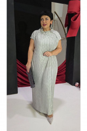 Платье прямого силуэта из фактурной ткани с крэш-эффектом, который создает в силуэте вертикальные заломы визуально вытягивающие фигуру и придает модели выразительный образ. Короткий рукав-реглан с навесными петельками и пуговицами, обтянутыми основной тканью рисует линию рельефа по переду и спинке сужая плечевой пояс. Платье на подкладке мягкое и удобное в движении. По спинке в среднем шве короткая потайная молния. Состав: основная ткань 100% полиэстер, подкладка 100% полиэстер. Длина платья 134 см, ширина плеча 23 см (р 50-54), 23,5 см (р 56-60). Платье 50 52 54 56 58 60 обхват талии 116 120 124 128 132 136 обхват бедер 132 136 140 144 148 152