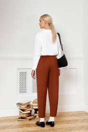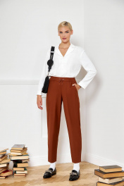 Блузка женская, свободного кроя. Из высококачественной вискозы с легким эффектом жатости. Горловина с отложным воротником и лацканами. Рукав спущенный, втачной, с разрезами по низу. Полочка из 2х частей. С застежкой на петли и пуговицы. Низ изделия с разрезами по боковым швам. длина спинки - 66.5 см.