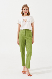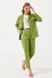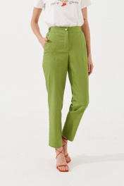 Зеленые узкие брюки из текстиля с вытачками по переду VIZANTI 9241 зеленый