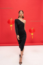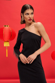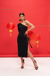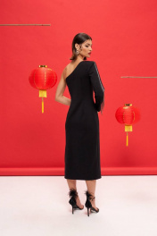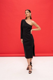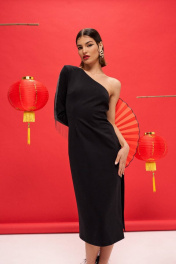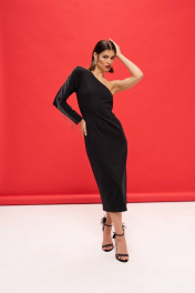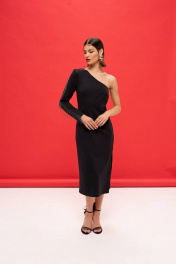 Платье из трикотажа с асимметричной горловиной и рукавом VIZANTI 9388 черный