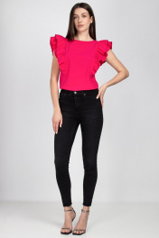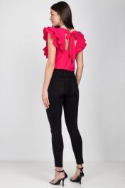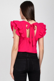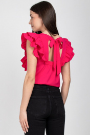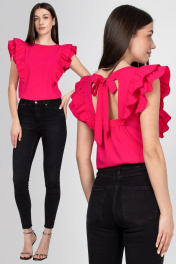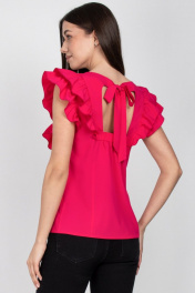 Розовая блуза из текстиля с рельефами и бантом на спинке VIZAVI 670 фуксия