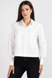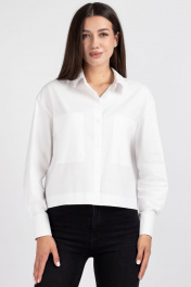 Белая рубашка прямого силуэта со спущенным плечом и карманами VIZAVI 696 белый