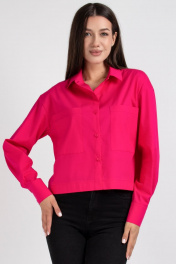 Розовая рубашка из хлопка со спущенным плечом и карманами VIZAVI 696 фуксия