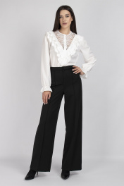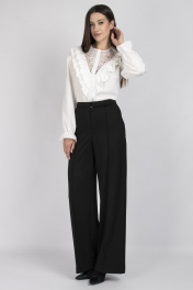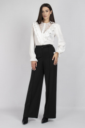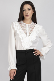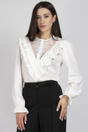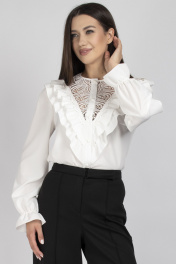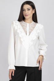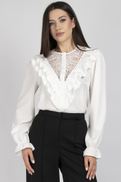 Элегантная блуза с ажурными кокетками и рюшами в классическом стиле VIZAVI 708 молочный