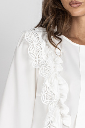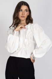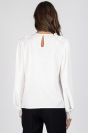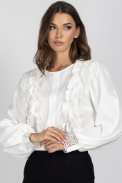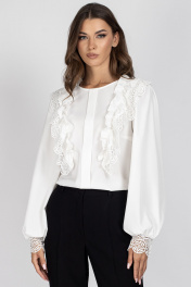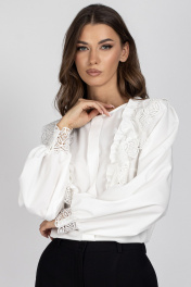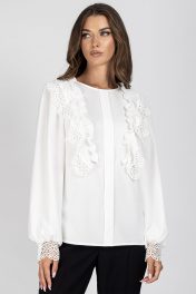 Блузка с кружевными вставками и воротником-стойкой VIZAVI 716 молочный