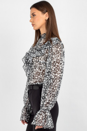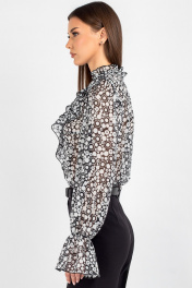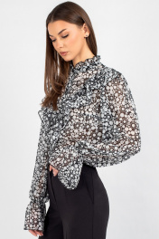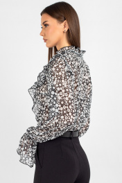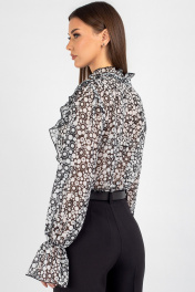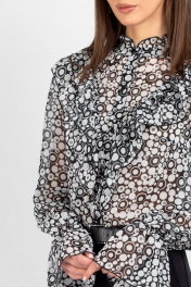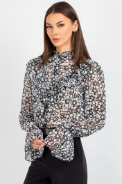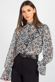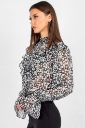 Блузка из лёгкого шифона — идеальное решение для создания как повседневных, так и деловых образов. В современном мире женской моды блузки с принтом остаются неизменно актуальными: они помогают выделиться из толпы, подчеркнуть индивидуальность и добавить яркости даже самому сдержанному гардеробу. Полуприлегающий силуэт этой модели выгодно подчёркивает фигуру, не сковывая движений, — а значит, она подойдёт для самых разных ситуаций: от офисной встречи до вечернего выхода. Шифоновая блузка с принтом — это воплощение лёгкости и женственности. Передняя часть изделия оформлена центральной бортовой застёжкой на 8 петель и пуговиц: это не только обеспечивает удобство ношения, но и придаёт модели классический шарм. Нагрудные выточки и кокетка создают безупречную посадку по фигуре, а вставленные в шов кокетки рюши добавляют романтичности и утончённости. Спинка блузки выполнена цельной. Втачной рукав со сборкой по окату подчёркивает линию плеча и придаёт силуэту мягкость, а присборенная на эластичную тесьму нижняя часть рукава создаёт изящный акцент и обеспечивает комфортную посадку на запястье. Завершает дизайн горловина со стойкой и рюшей — этот элемент делает образ более нарядным. Такая блузка легко комбинируется с разными элементами гардероба: её можно носить с классическими брюками, юбкой‑карандашом или джинсами с высокой талией. Лёгкий шифон приятен к телу, хорошо пропускает воздух и не вызывает дискомфорта в течение дня — идеальный выбор для тёплого сезона. Создавайте неповторимые образы, подчёркивающие вашу индивидуальность и чувство стиля. Уход: бережная стирка при температуре не выше 30°С.