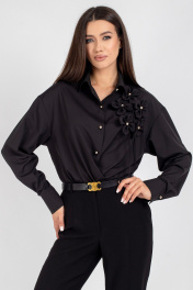 Черная oversize блузка с цветками и застежкой VIZAVI 810 черный
