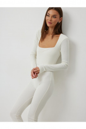 Комбинезон: – приталенный силуэт – металлическая неразъёмная молния на спинке – рукав одношовный – квадратный вырез.