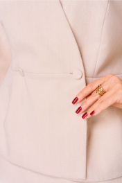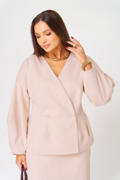 Жакет: – приталенный силуэт – двухбортный – декоративная застёжка петли-пуговицы – спущенный рукав-фонарь – на подкладке.