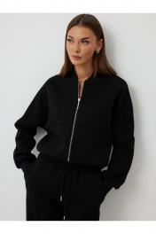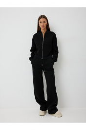 Джемпер: - ткань: футер трёхнитка - свободный силуэт - рукав спущенный, на манжете - застёжка на металическую разъемную молнию Брюки: - ткань: футер трёхнитка - свободный силуэт - внутри пояса эластичная резинка - пояс регулирутся шнурком.